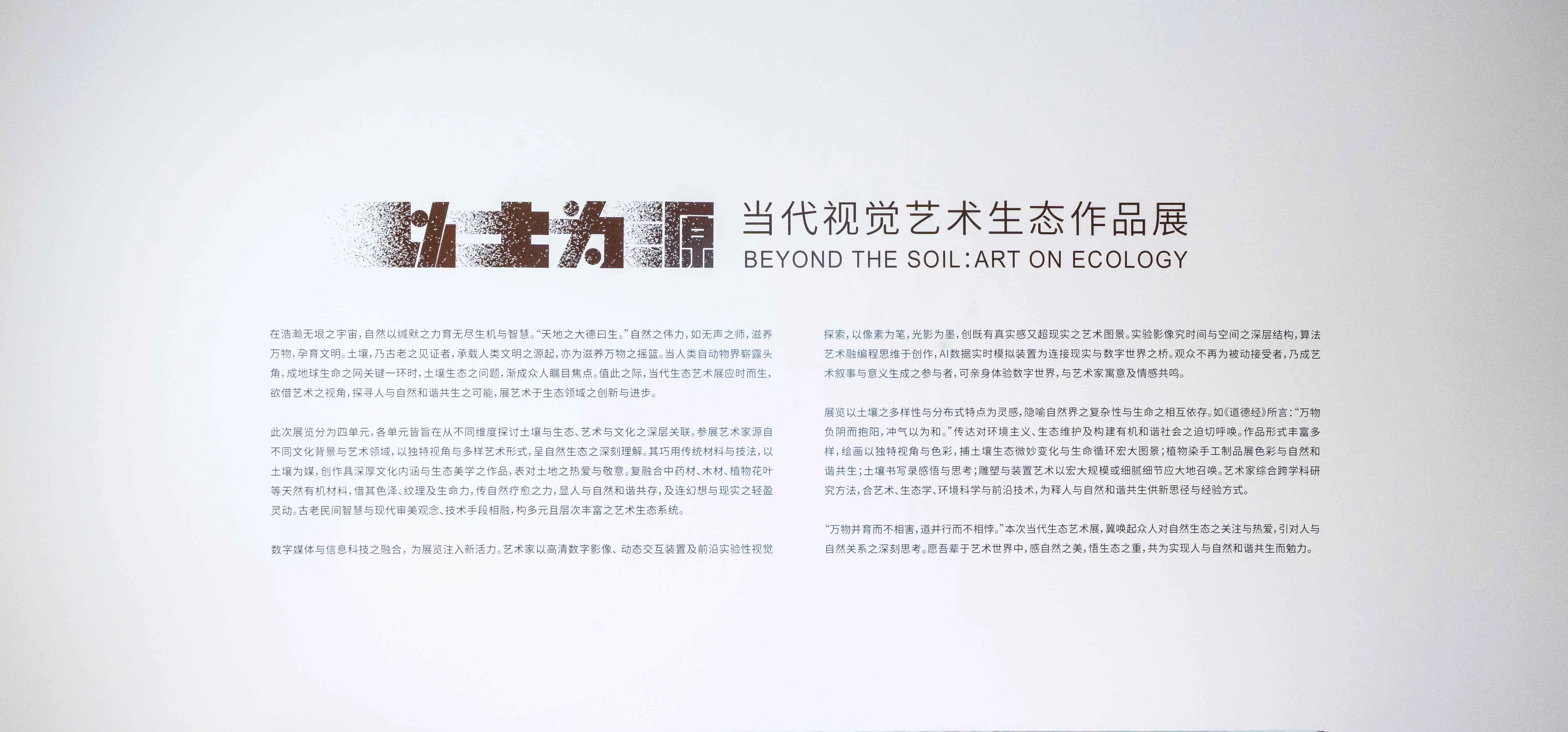 展览以生态艺术为切入点,从四个单元多角度探讨土壤与生态、艺术与文化之深层关联,通过绘画、雕塑、装置、数字影像等形式,呈现自然的生机与美感,表达对土地的敬意与对生态未来的思考。